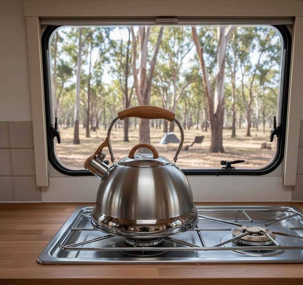 Whistling Stainless Steel Kettle w Foldable Handle for Camping