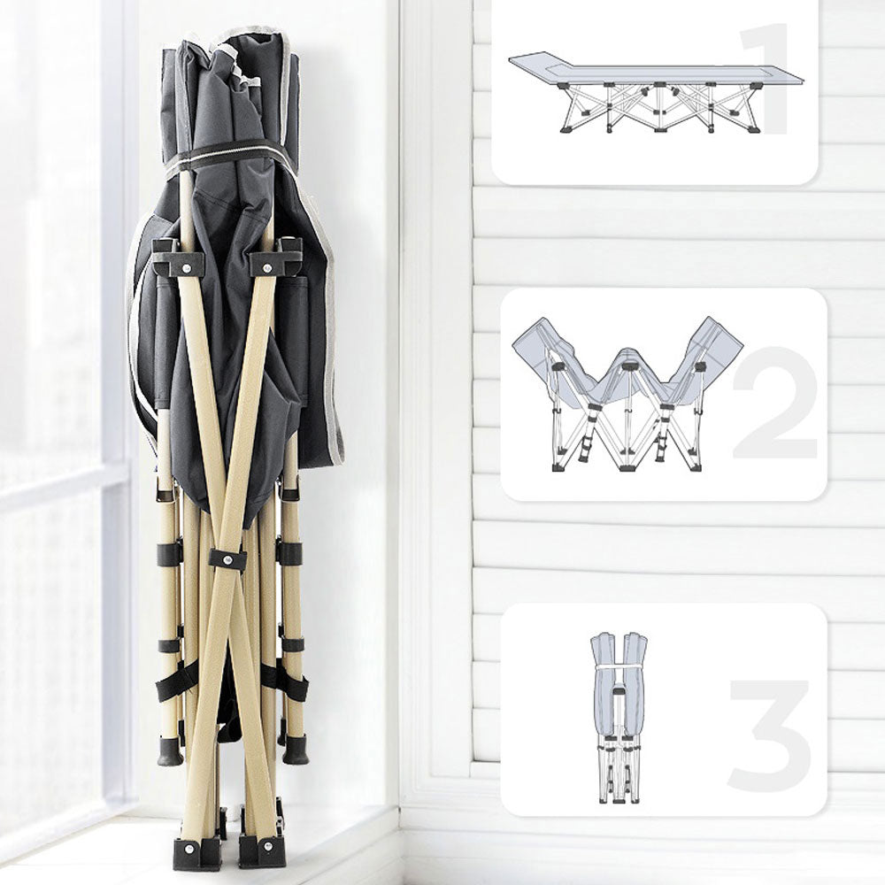 The structure of Portable Folding Bed was designed with multiple support structure making it very durable and strong. The steel tube bed frame adopts a multi-triangular structure with unique design and the linkage support structure provides super load-bearing. The link axis of screws are not easy to deform and has reinforced steel construction that could support weight up to 160kg. The portable folding design is also very convenient to save storage space ideal for your camping adventures or beach travels. It can also transform any rooms into a stable and comfortable bedroom ideal for guest and visitors who like to spend a night at your home.