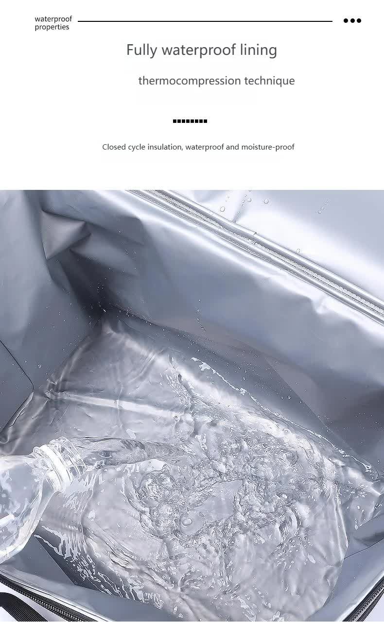 - Advanced Insulation: Features a thick, leakproof PEVA lining that provides excellent thermal retention, keeping contents cool or warm for extended periods.