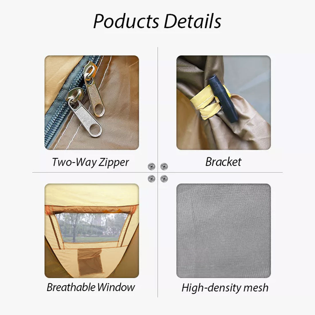 The tent is made of high-quality heavy-duty 210D polyester material with PU coating to keep rain and UV rays at bay efficiently and effectively. The steel poles are durable and super strong to keep your tent sturdy and firm. To enable ample light and ventilation within the tent, mesh windows are featured while the entrance is easily opened and closed with a handy zipper. Step inside and appreciate the generous space. Handy carry bag included. Camp Your Way!
